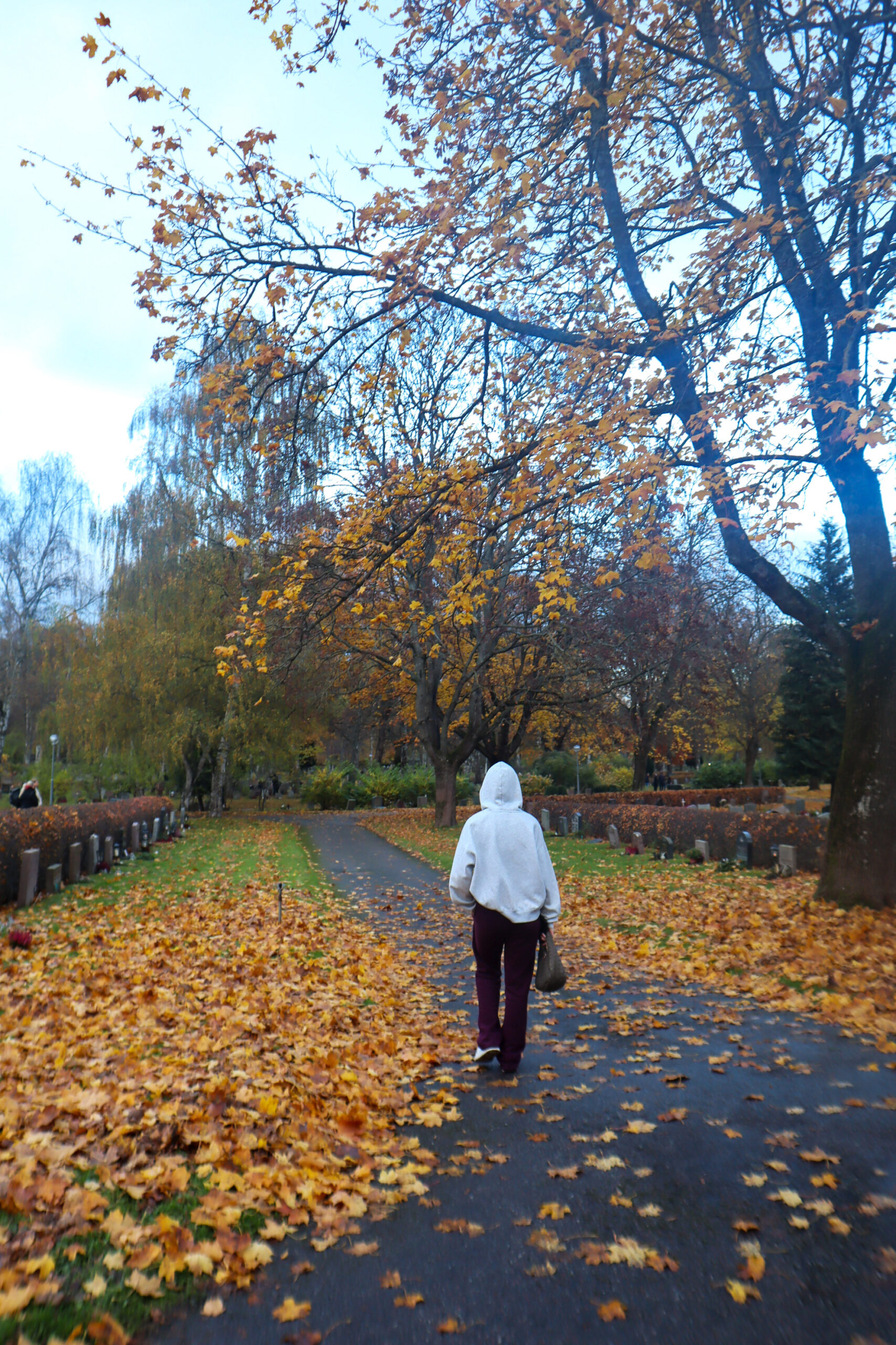 Ingen av ungdomarna ville åka till Jorm på höstlovet, med tanke på den låga resan, att vi snart ska dit över julen och att dom hade planer med sina vänner. Och själv pallade jag inte gå på någon halloweenfest (se inledningen och orsaken), men till barnminneslunden ville både Jonna och jag. En fin stund ihop.