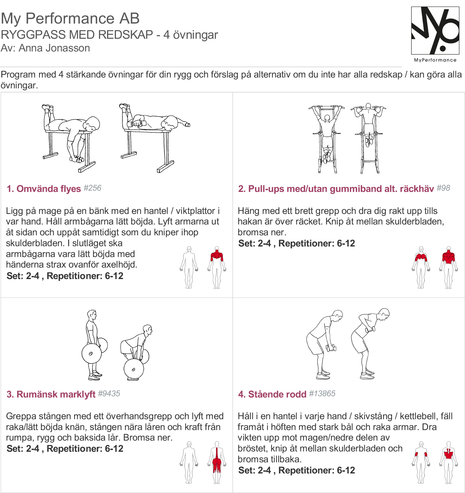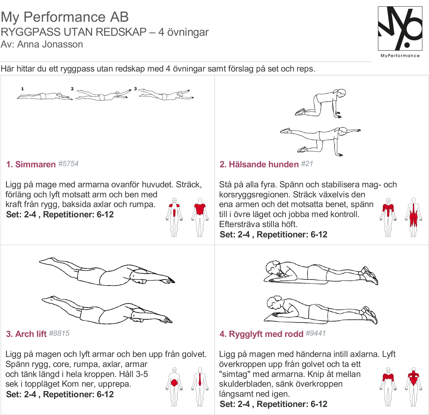 - Del 3: Se nedan – 2 ryggträning med- eller utan redskap