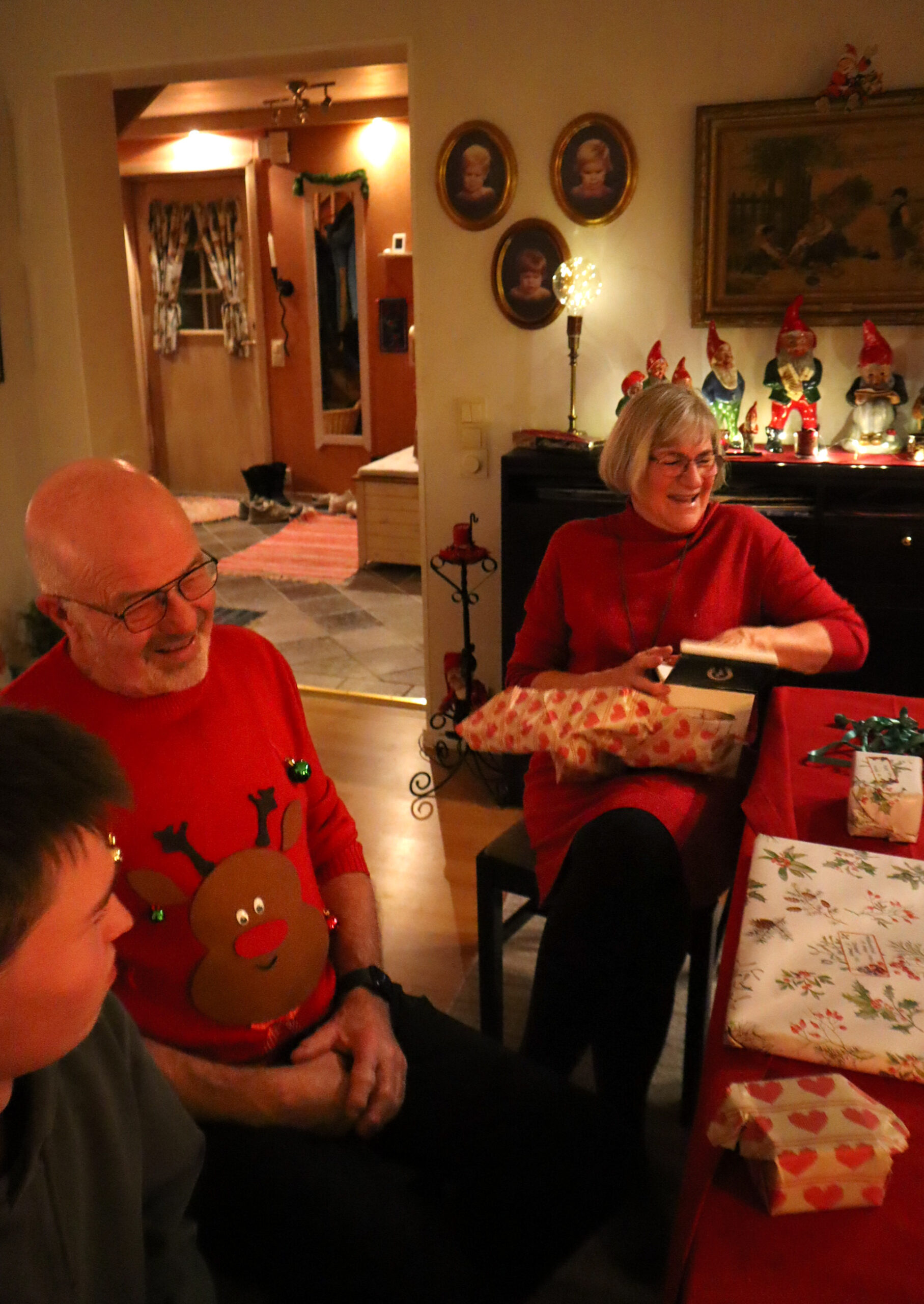 11.30. Rörelsepaus. Julklappspromenad till släktingar med alla ungdomar, plus rumpa i garaget.