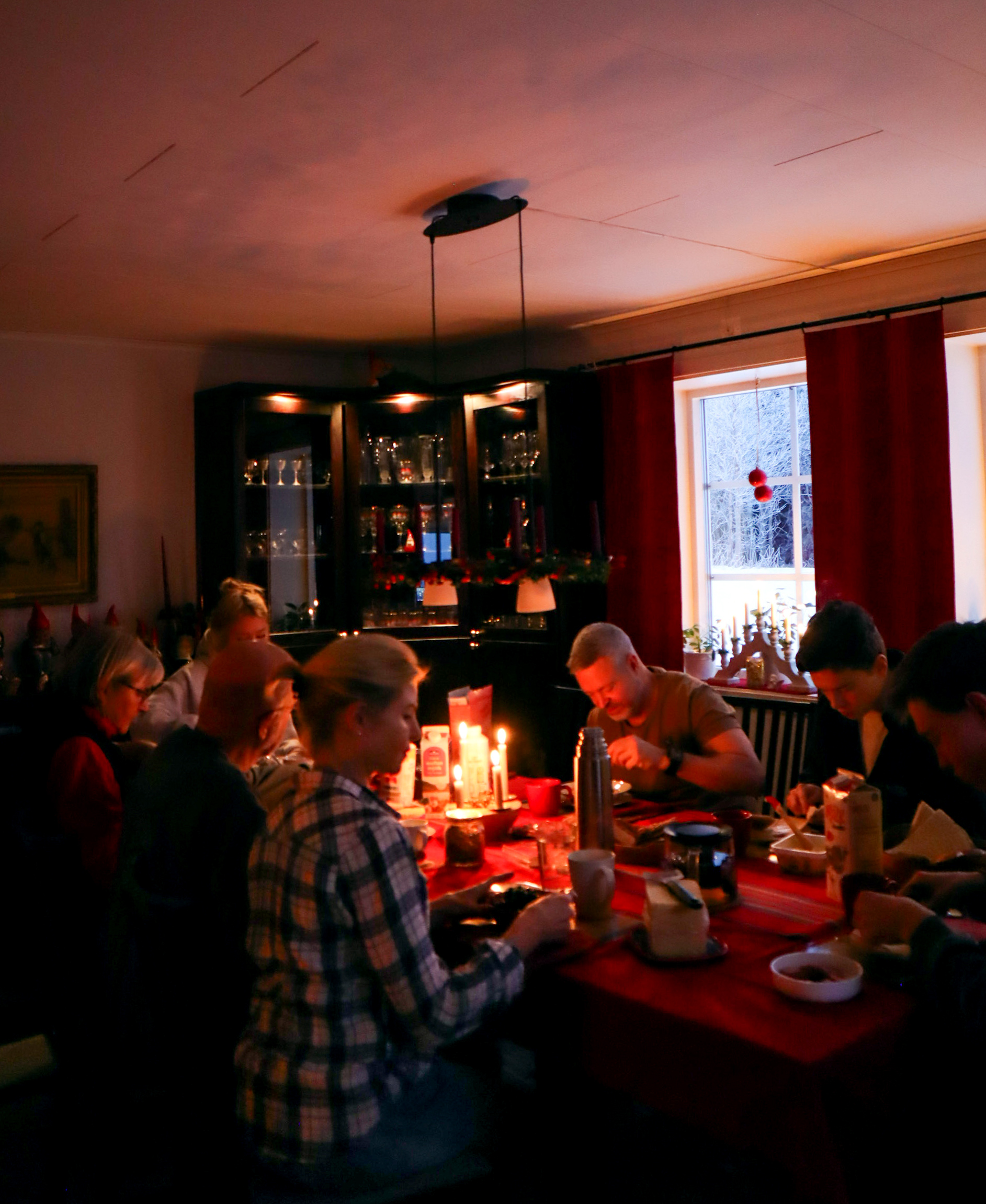 Det du INTE ser bland mina bilder är allt stök kring att slå ihop 3 generationer, traditioner, vanor, roller och förväntningar när vi strålar samman här i Jorm. För egen del – utmanande att slå ihop både ”lilla Anna”, dottern med modersrollen, x-frun, bloggaren.. och i nuläget en rätt trött själ efter årets påfrestningar. Som alltid svårt, som alltid mysigt. Vi umgås i regel bara ca 3 gånger om året allihop, men då blir det intensivt – på gott och ont, men mest gott. Min kära mor är Lassebackens ”Ernst”, julexpert på allt från pynt till mat, vi övriga hjälper till, men framför allt – ÄR. Tillsammans.
