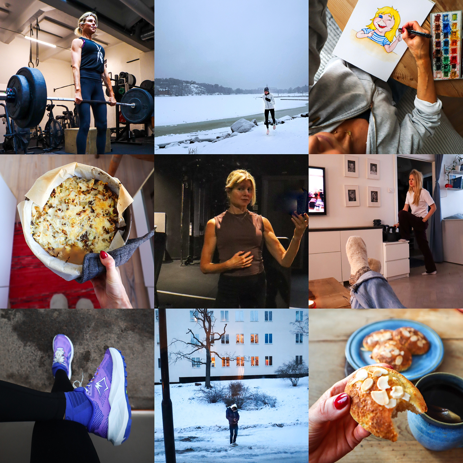 » Träningen har jag varken växlat ner eller upp, trots att jag har all tid i världen att lägga på den. Jag fortsätter med 2-3 egna lugna styrkepass i veckan, 1 eller 2 crossfitpass, 2-3 löprundor (beroende antal/intensitet av crossfitpass) och nu ska jag även försöka hålla i 1 yogapass.