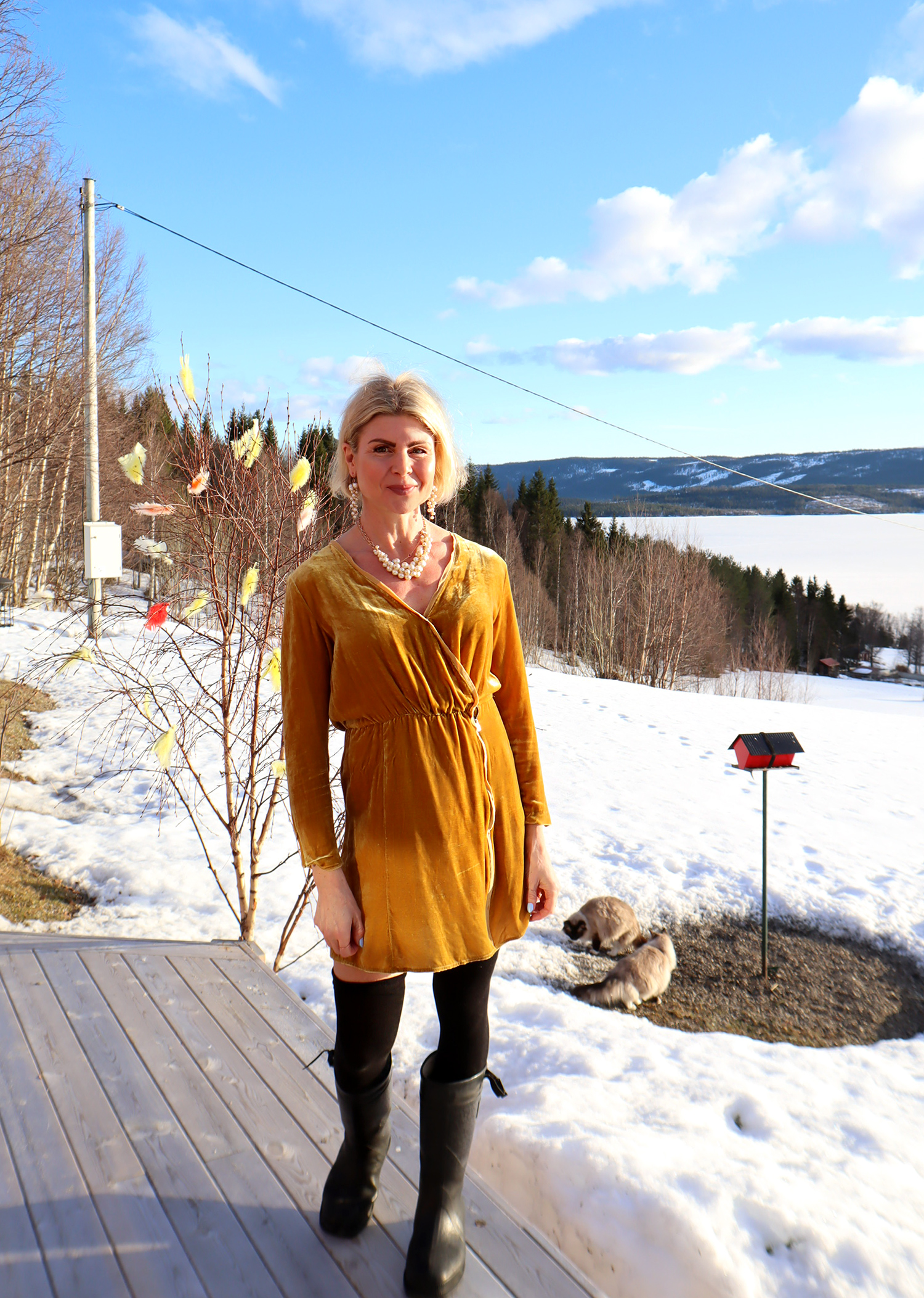 Same same guldig sammetspåskoutfit och favoritutsikt, inkl. yngsta, lurviga ungarna.