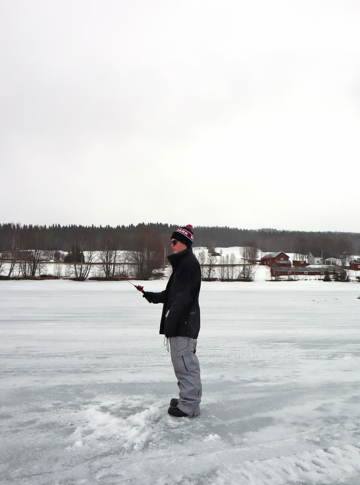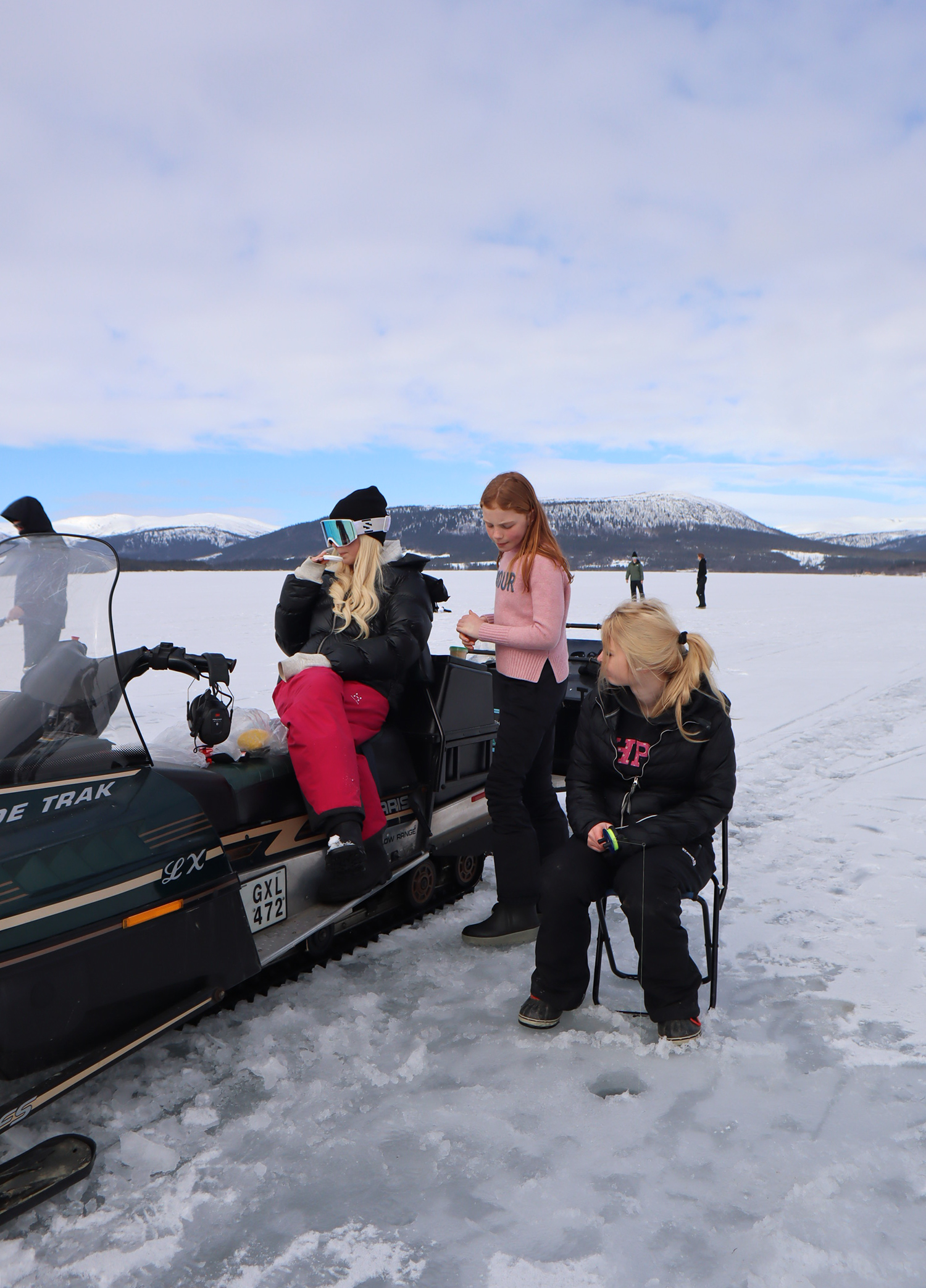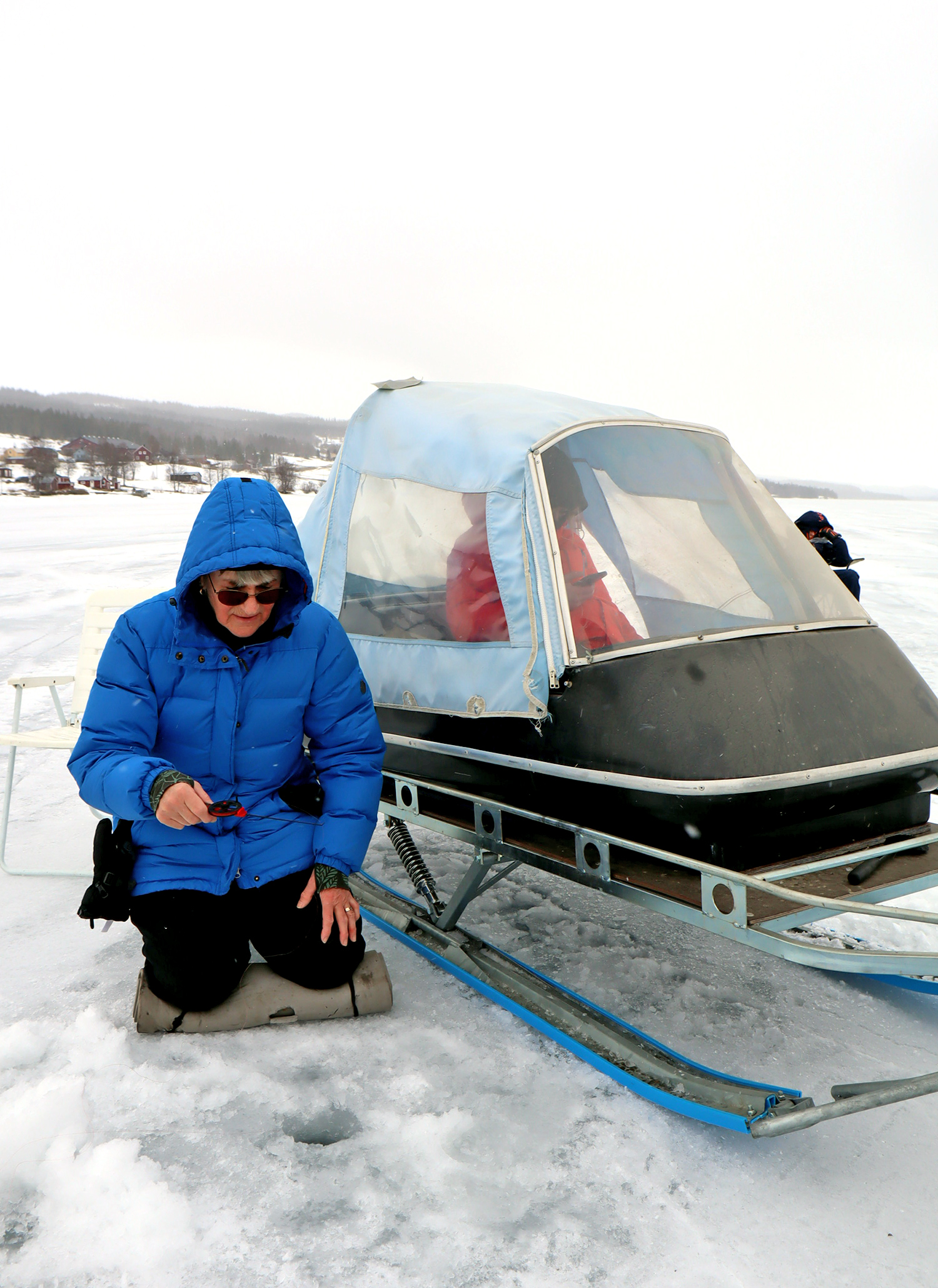 Mamma hittade lä bakom skoterkälken, men ingen fisk.