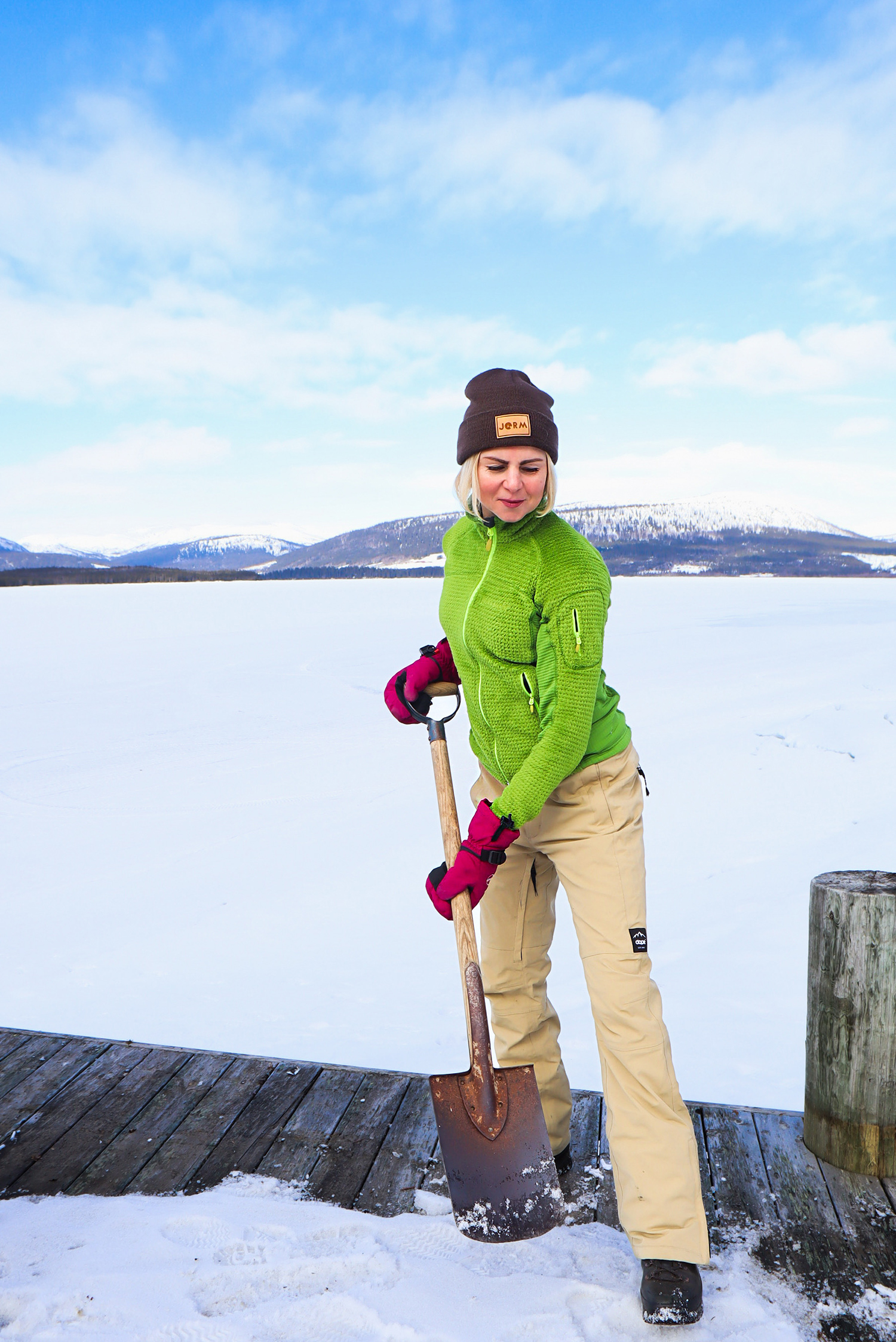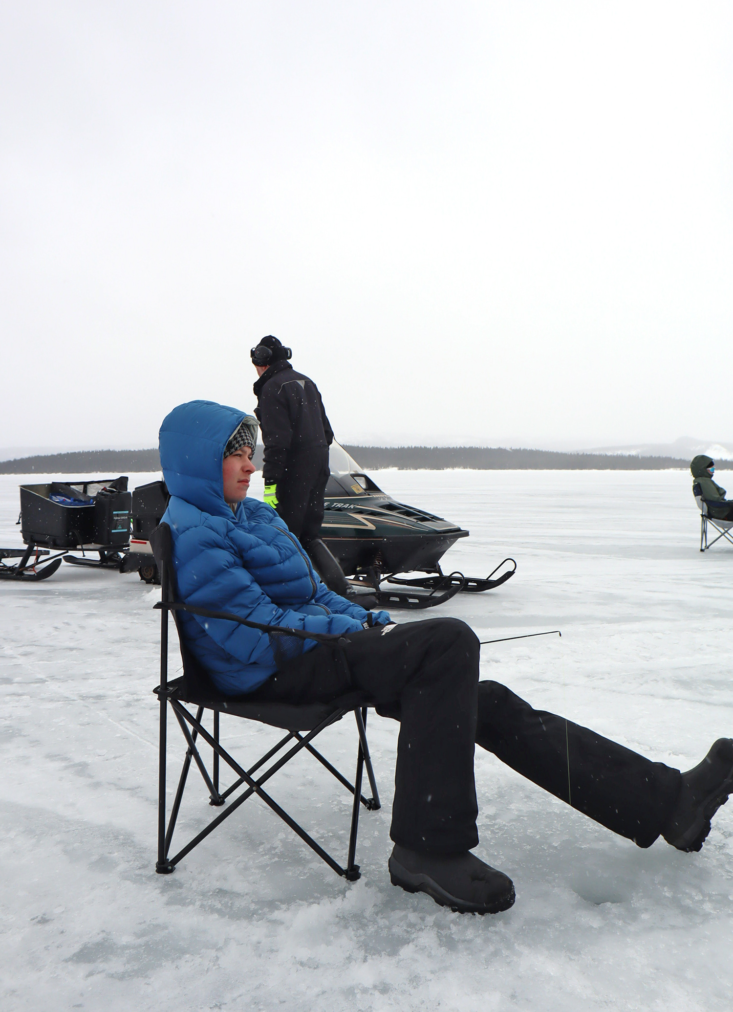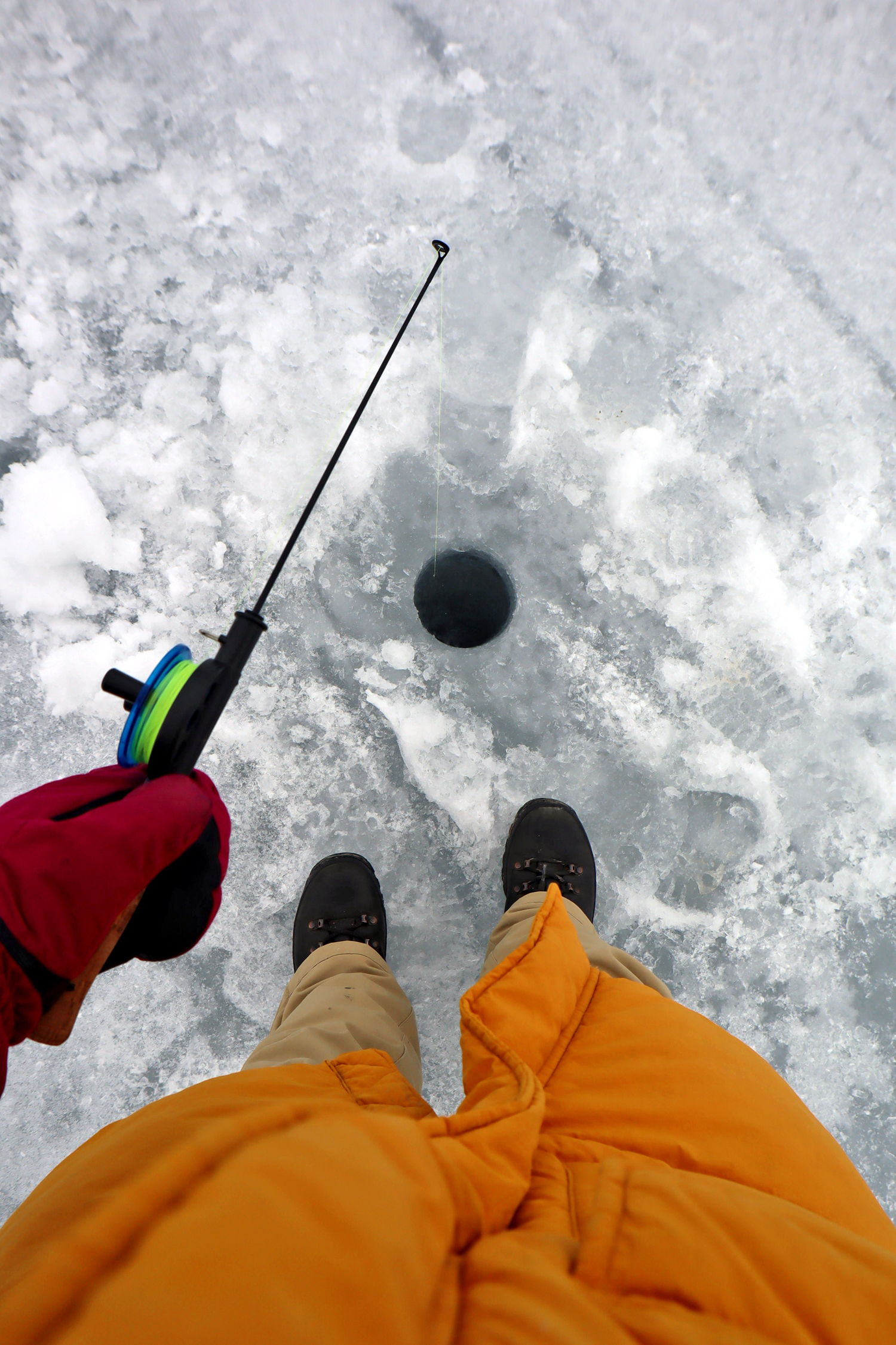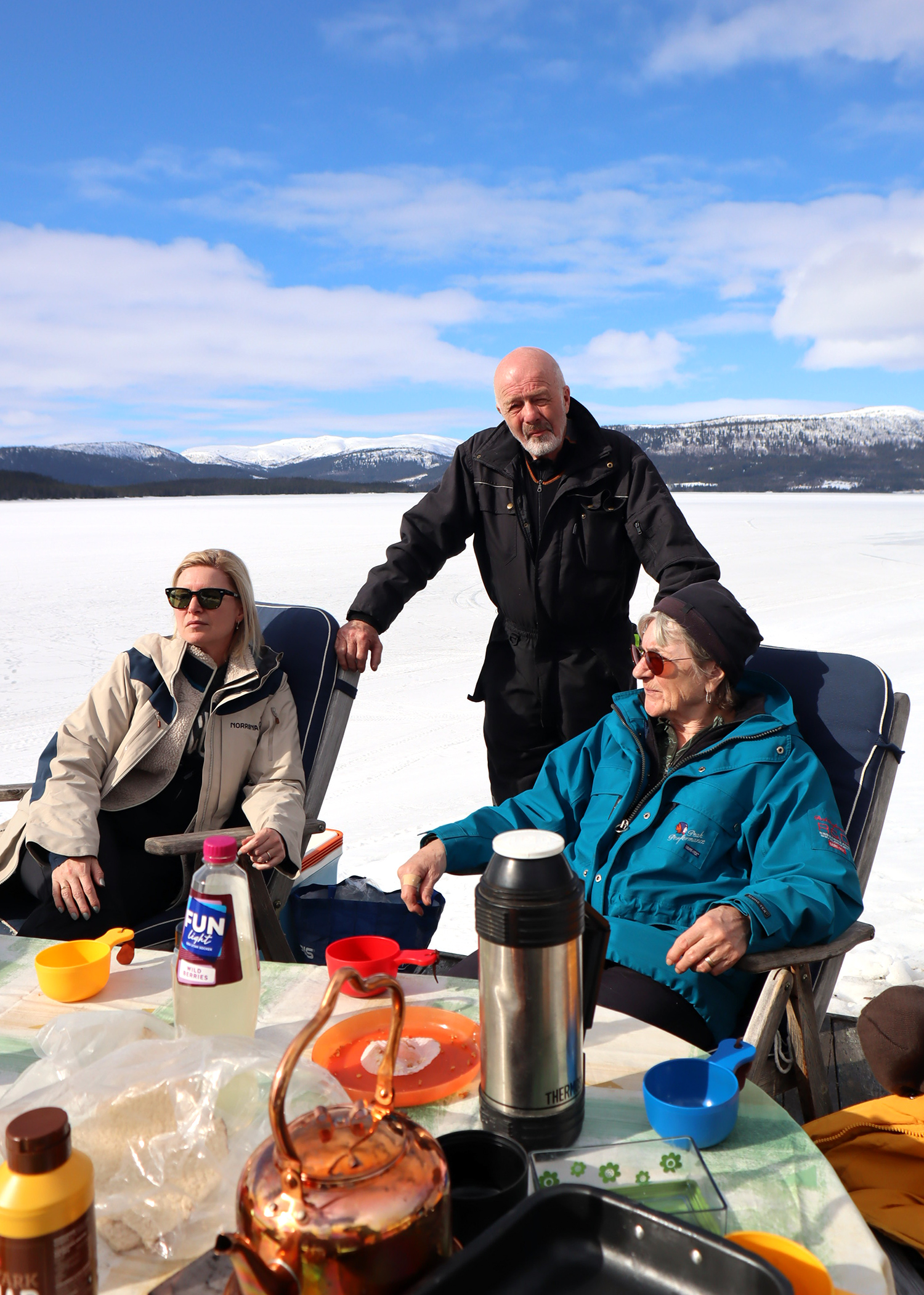 Mamma hittade lä bakom skoterkälken, men ingen fisk.