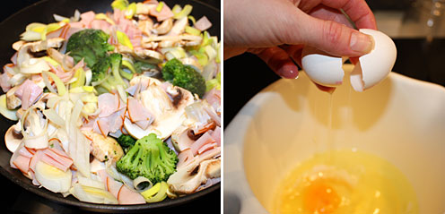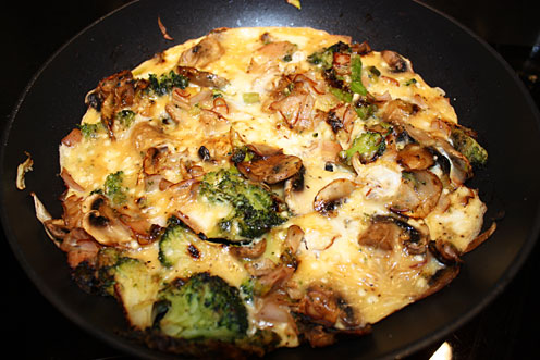 Dagens kalkon/champinjon/purjolök/vitlök/broccoli-omelett.